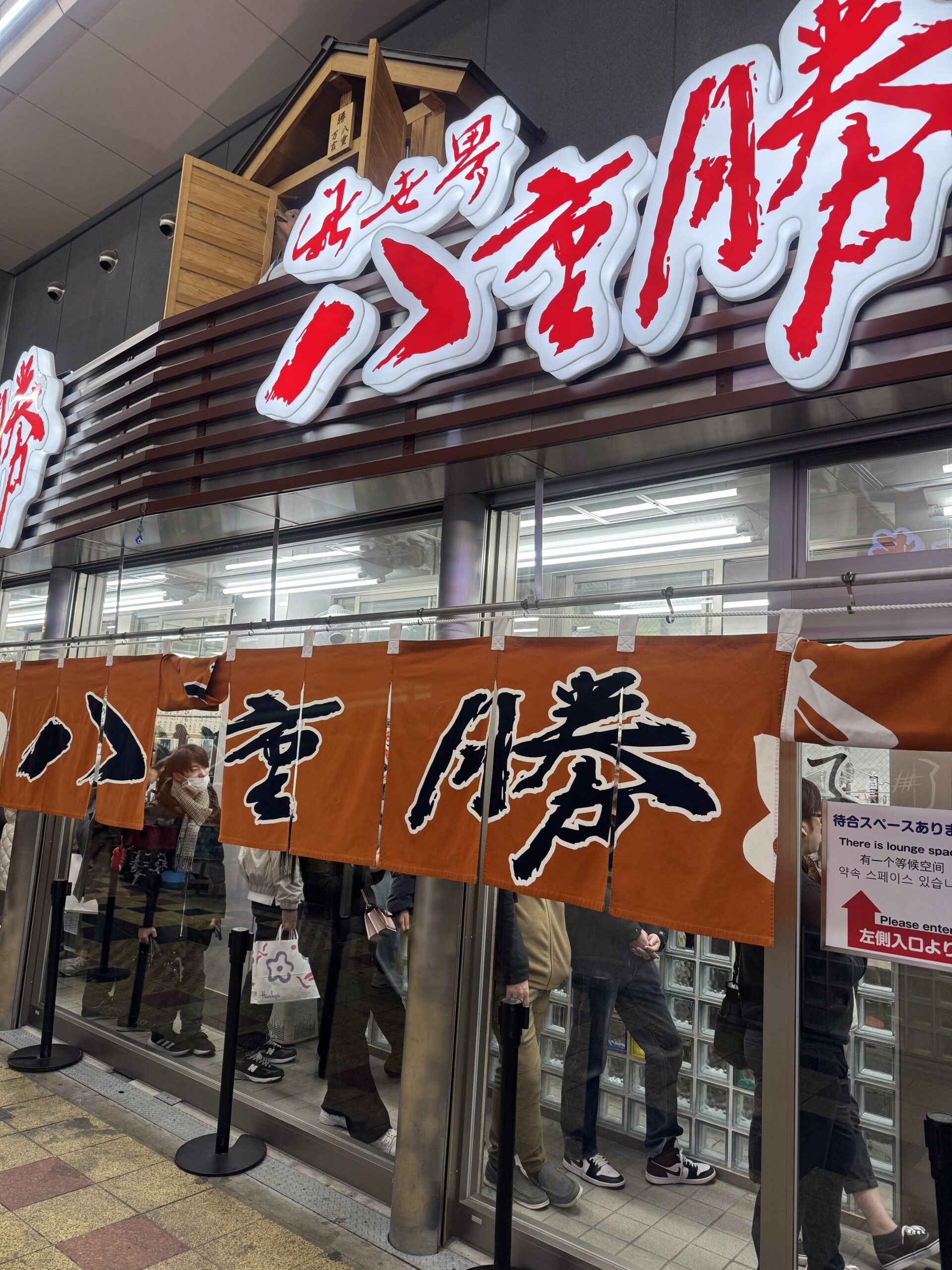 晩御飯は(ソースをかけるのではなく)昔ながらの二度つけ禁止のソースで串カツが食べたいと友人に要望しており、新世界の八重勝に来ました。かなりの人気で長い列ができていましたが、列も室内だったので凍えることなく待つことができました☆