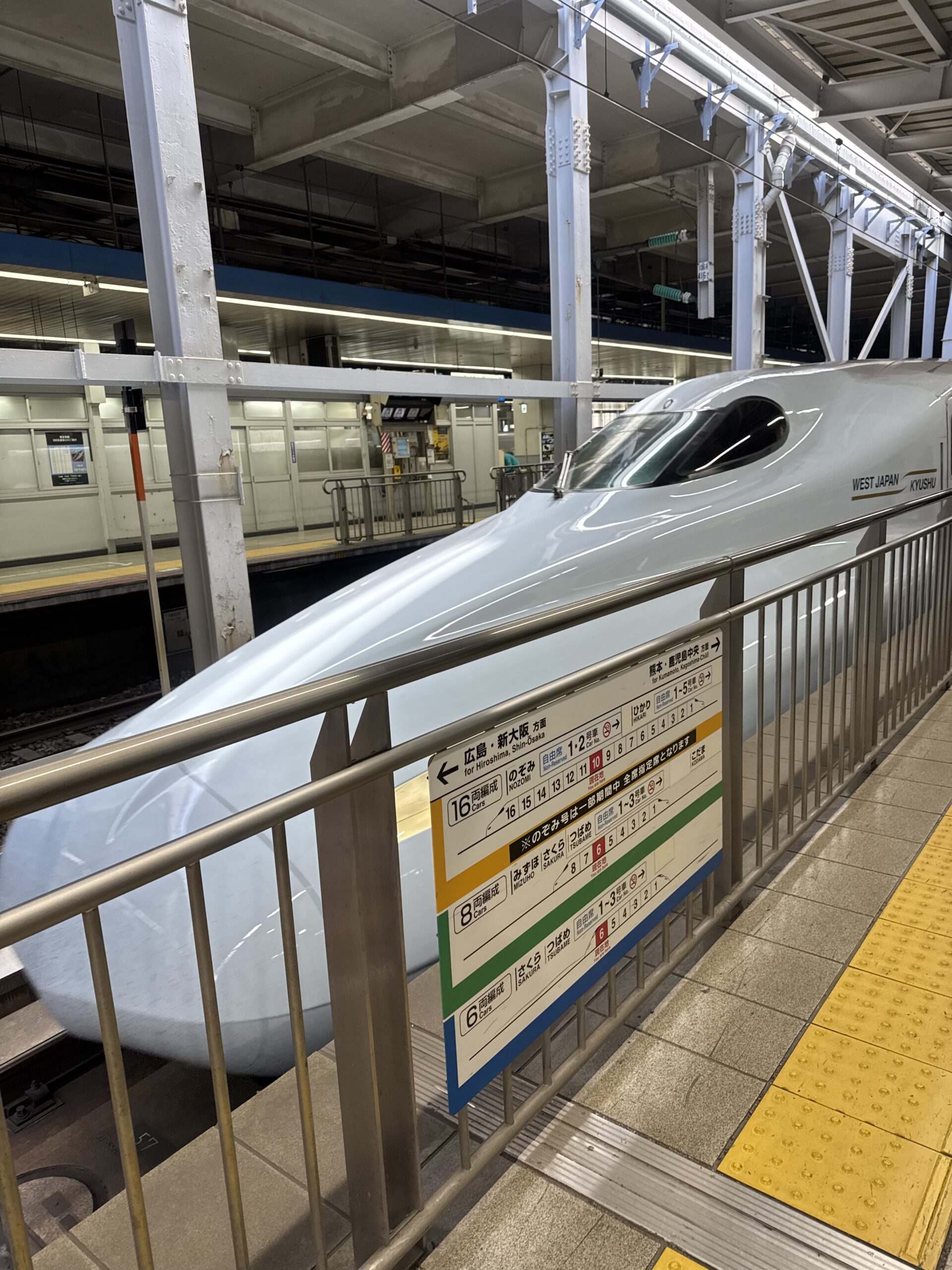 今回は新幹線で移動しました。乗ってる時間は約2時間半と飛行機よりも長くかかりますが、博多駅までの移動は時間が予測しやすく、新大阪駅着いてからのアクセスしやすさを考えると、時間的に飛行機と変わらない気がしました。