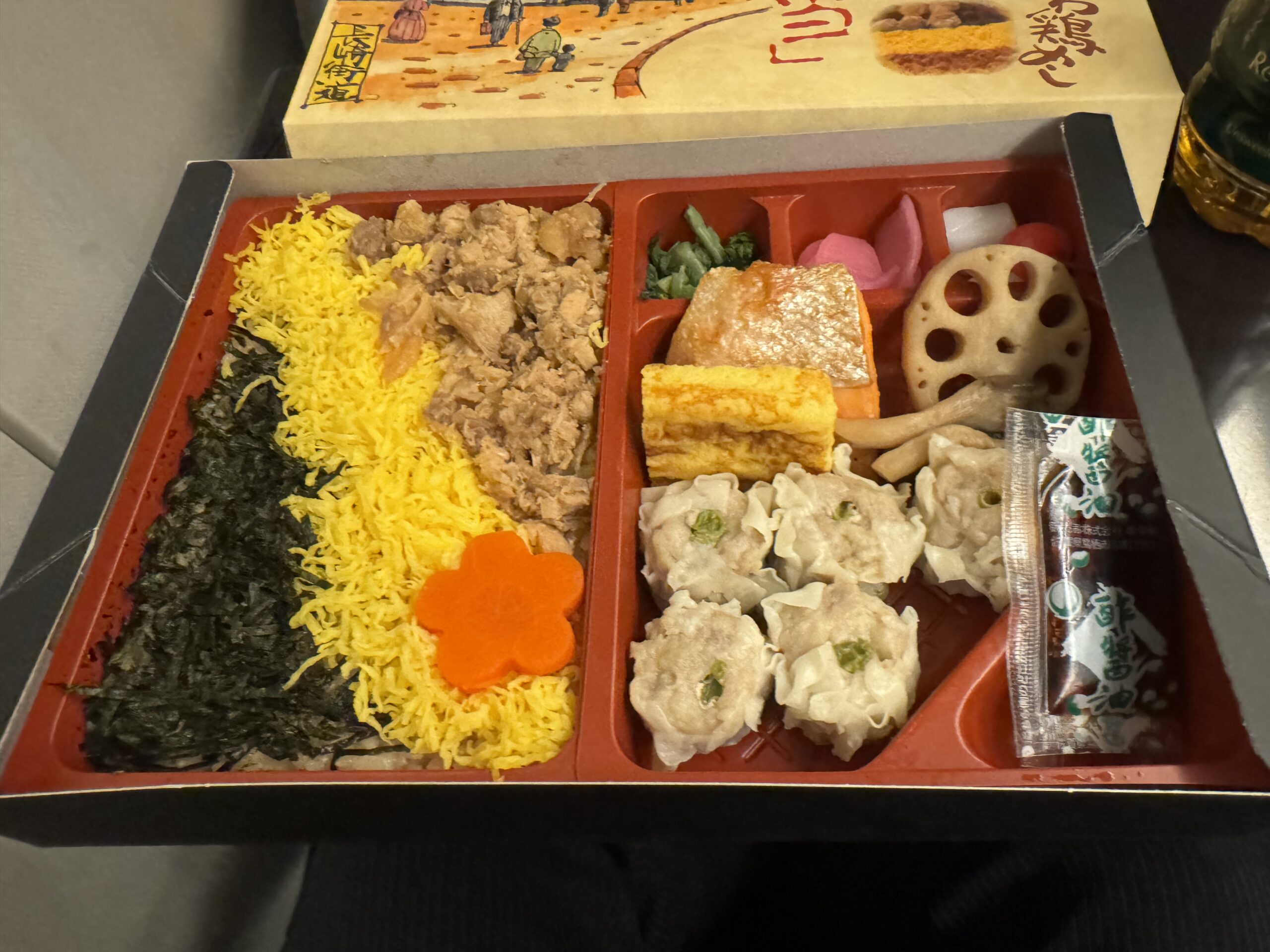 新幹線では駅弁を食べれるのも嬉しいですね。私はいつもかしわ飯・シュウマイのお弁当を頂きます(^人^)